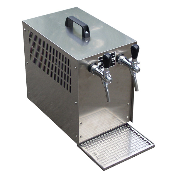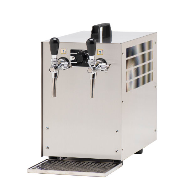 A száraz/zselés hűtés rendszerű asztali sörhűtő rozsdamentes változatban, 2 db csappal, 7 fokozatú hőfokszabályozóval és csepptálcával szerelve kapható. Bekapcsolást követően 5-10 percen belül hideg sört lehet csapolni vele.