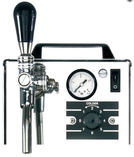 A száraz hűtési rendszerű asztali sörhűtő rozsdamentes változatban, beépített légkompresszorral, 1 db csappal, csepptálcával, 7 fokozatú hőfokszabályzóval és nyomásszabályzóval szerelve kapható. Bekapcsolást követően 5-10 percen belül hideg sört lehet csapolni vele.